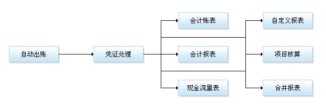 编制现金流量表 | 通过对会计凭证进行现金流量项目归集,系统自动形成现金流量表。 |